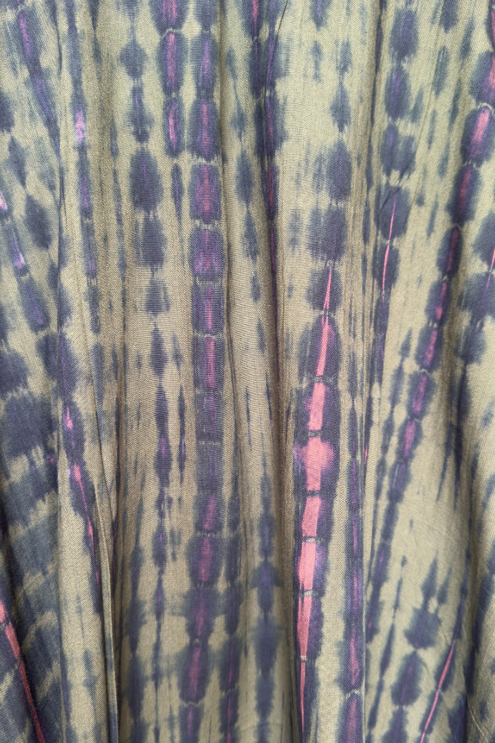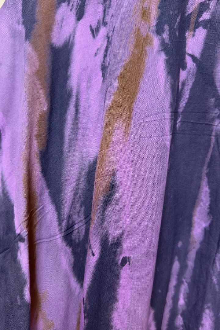 The Bali Kimono measures 1.30 m and is made of 100% cotton, hand-dyed using the traditional shibori technique.