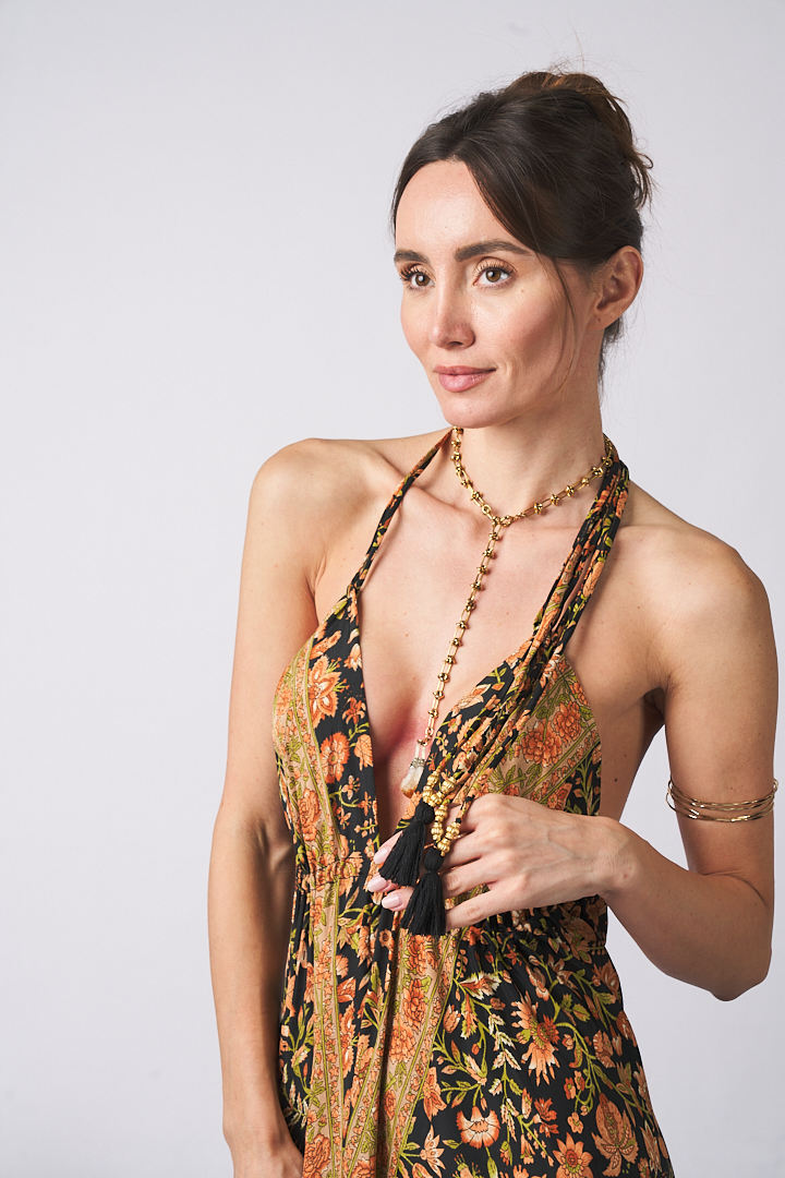 One size fits all, featuring adjustable shoulder ties and delicate tassel details.