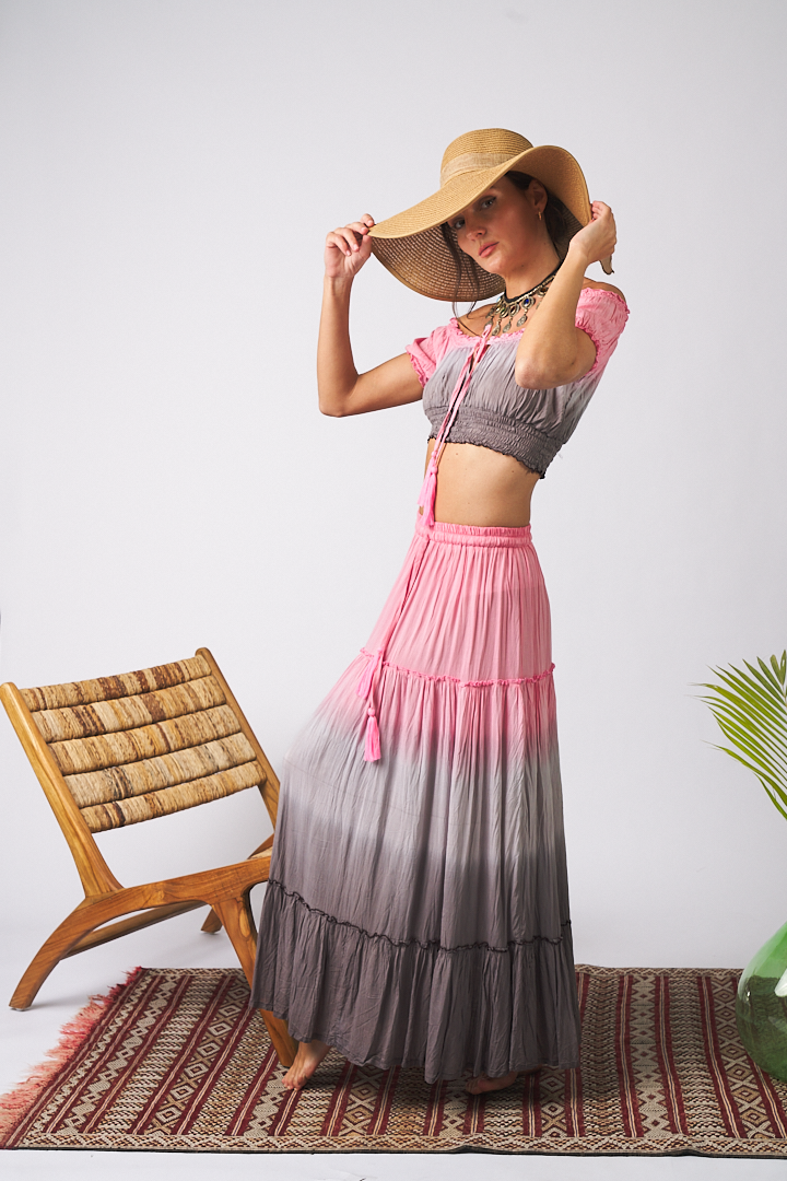 Maxi Skirt Tie Dye Grey and Pink